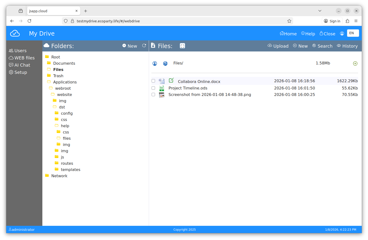 My-Drive.CLOUD is based on JSAPP.CLOUD web application development platform.